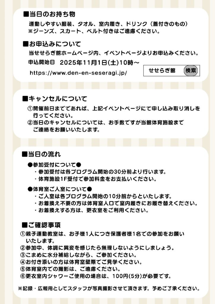 場所:せせらぎ館体育施設 体育室