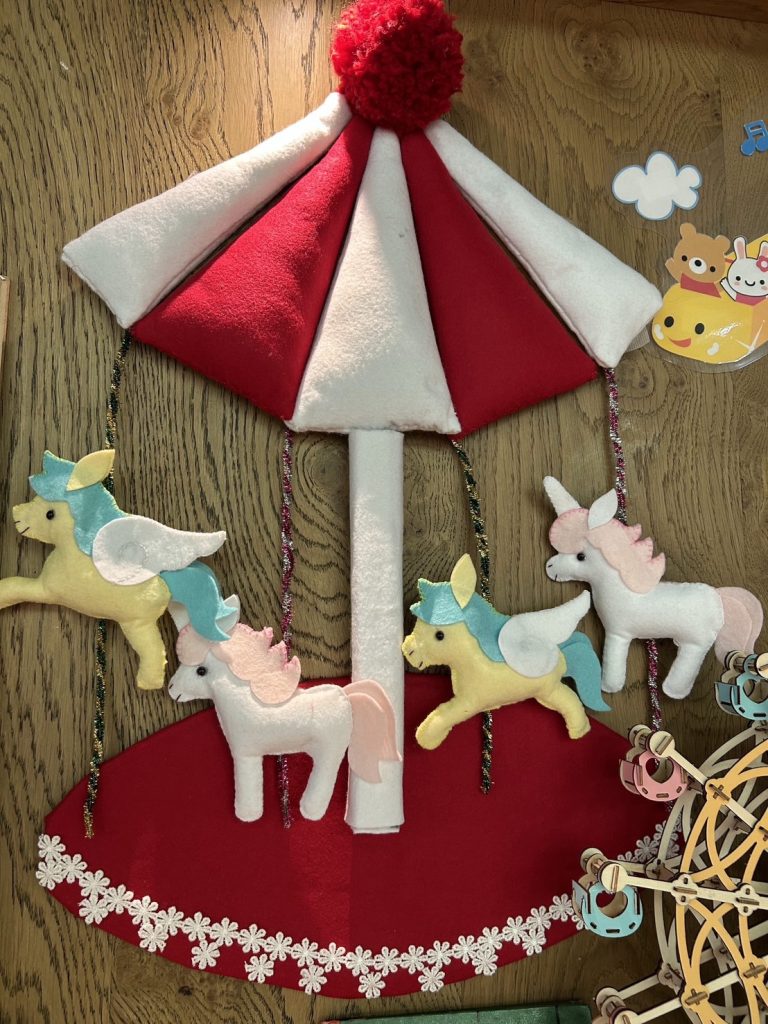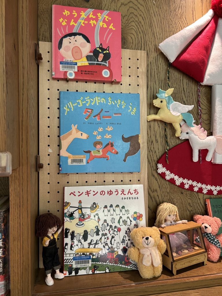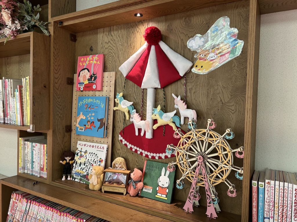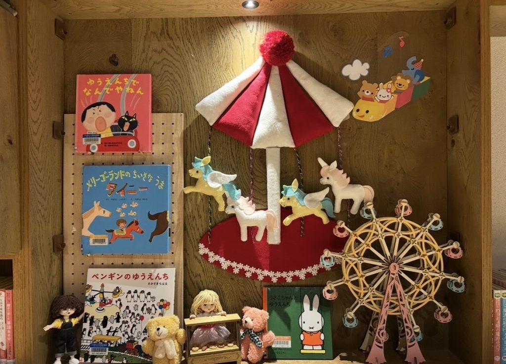 「子育て・絵本」コーナーのテーマは「ゆうえんち」です。