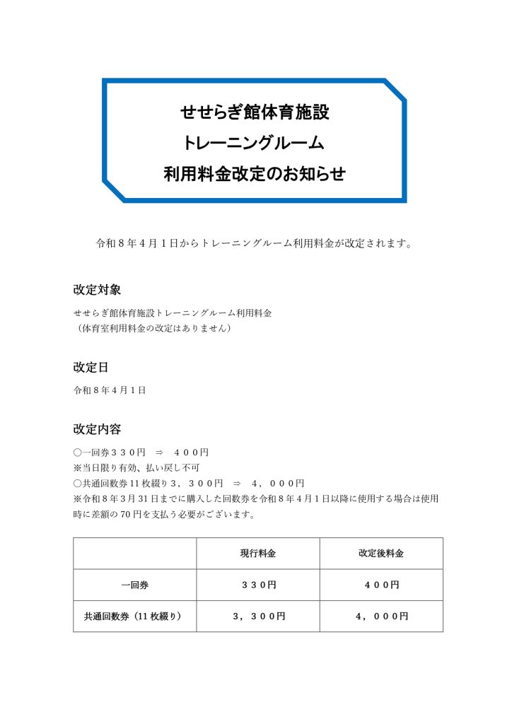 体育施設 トレーニングルームご利用案内&利用料金改定のお知らせ