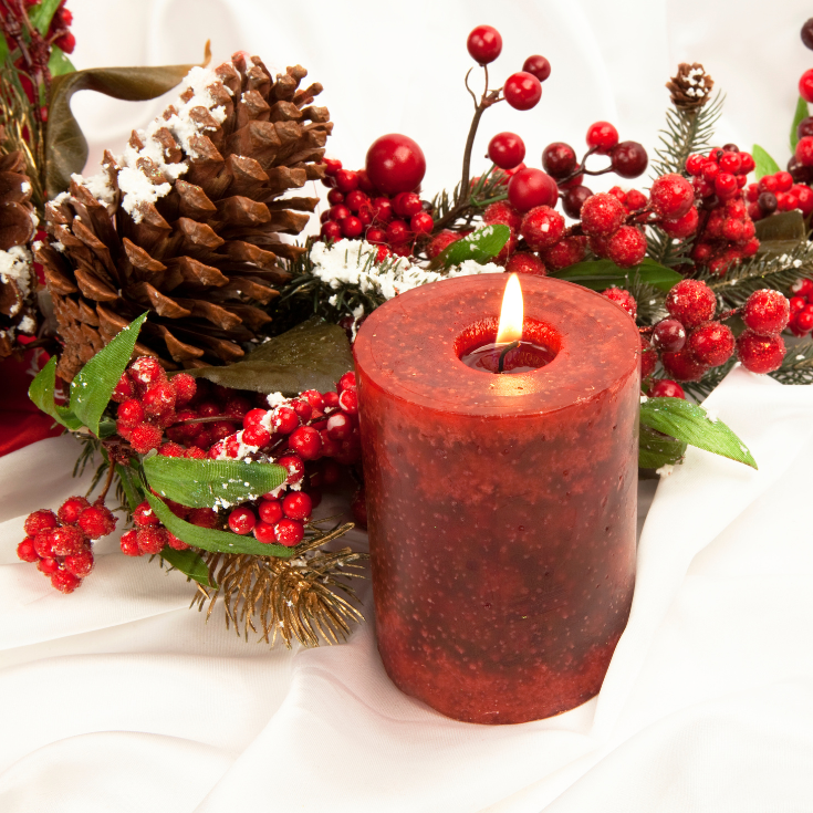 生花を使った大人向けのフラワーアレンジメントレッスン。今回はクリスマスをテーマにしたキャンドルアレンジを作ります。