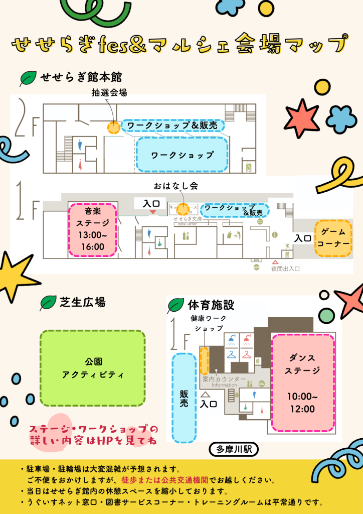 ●駐車場・駐輪場は大変混雑が予想されます。ご不便をおかけいたしますが、徒歩または公共交通機関でお越しください。